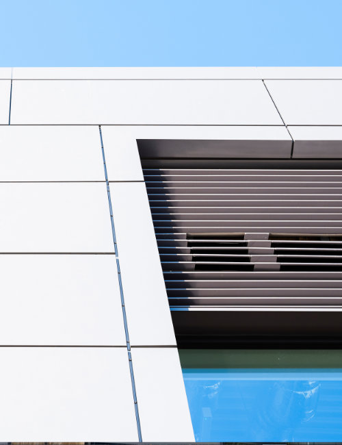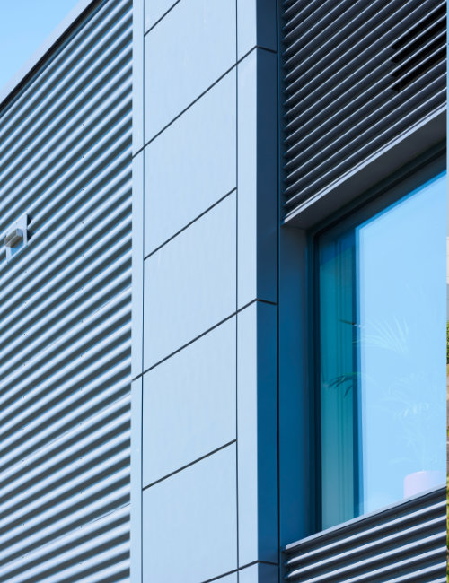 Available as either a face-fix, discreet-fix or secret-fix with a variety of recessed and flush joint options, it allows for fully systemised detailing - to allow complete integration of flush or recessed windows, doors and louvres. Slimwall™ is probably the most economic quality truly flat system and/or rainscreen currently available.