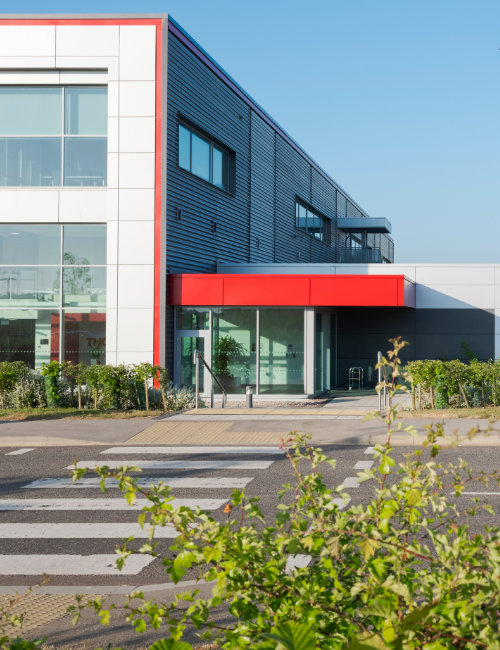 Our Slimwall™ flat panel system is available in aluminium, steel and Cor-ten and can be used either as a rainscreen or as a complete NON-COMBUSTIBLE insulated assembly.