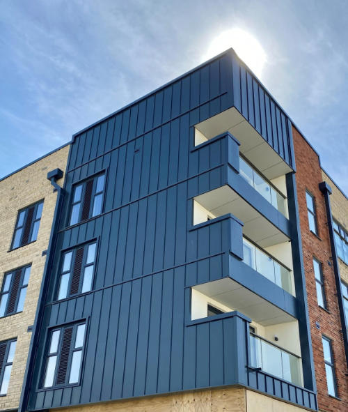 APL SnapLoc™ is a traditional standing seam profile system with NO SEAMING required. This make installation a much quicker and simpler process. Available in both steel and aluminium and a range of colours, the system has been successfully tested to CWCT standards and is designed as a 100% non-combustible assembly. The height of the seam is generally 40mm with pan widths of 250mm and 450mm.